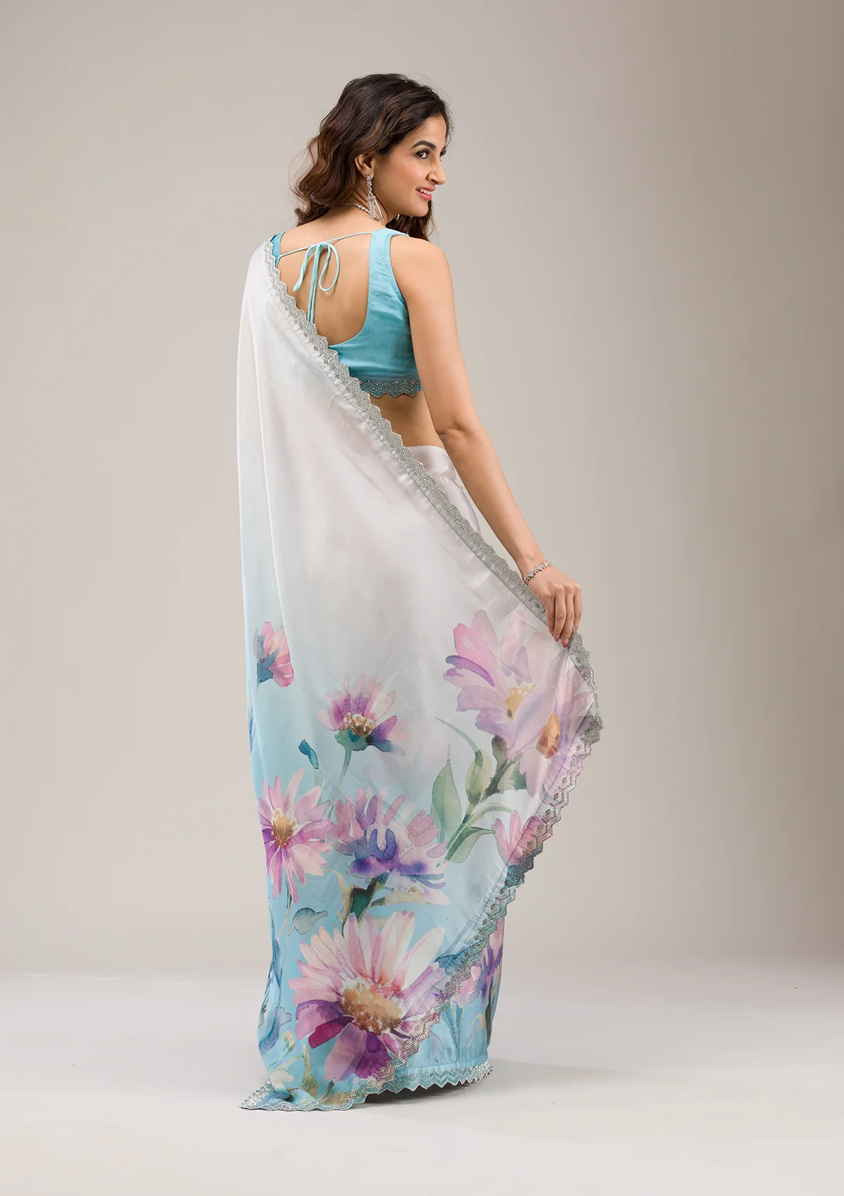 Sky Blue Stonework Satin Saree